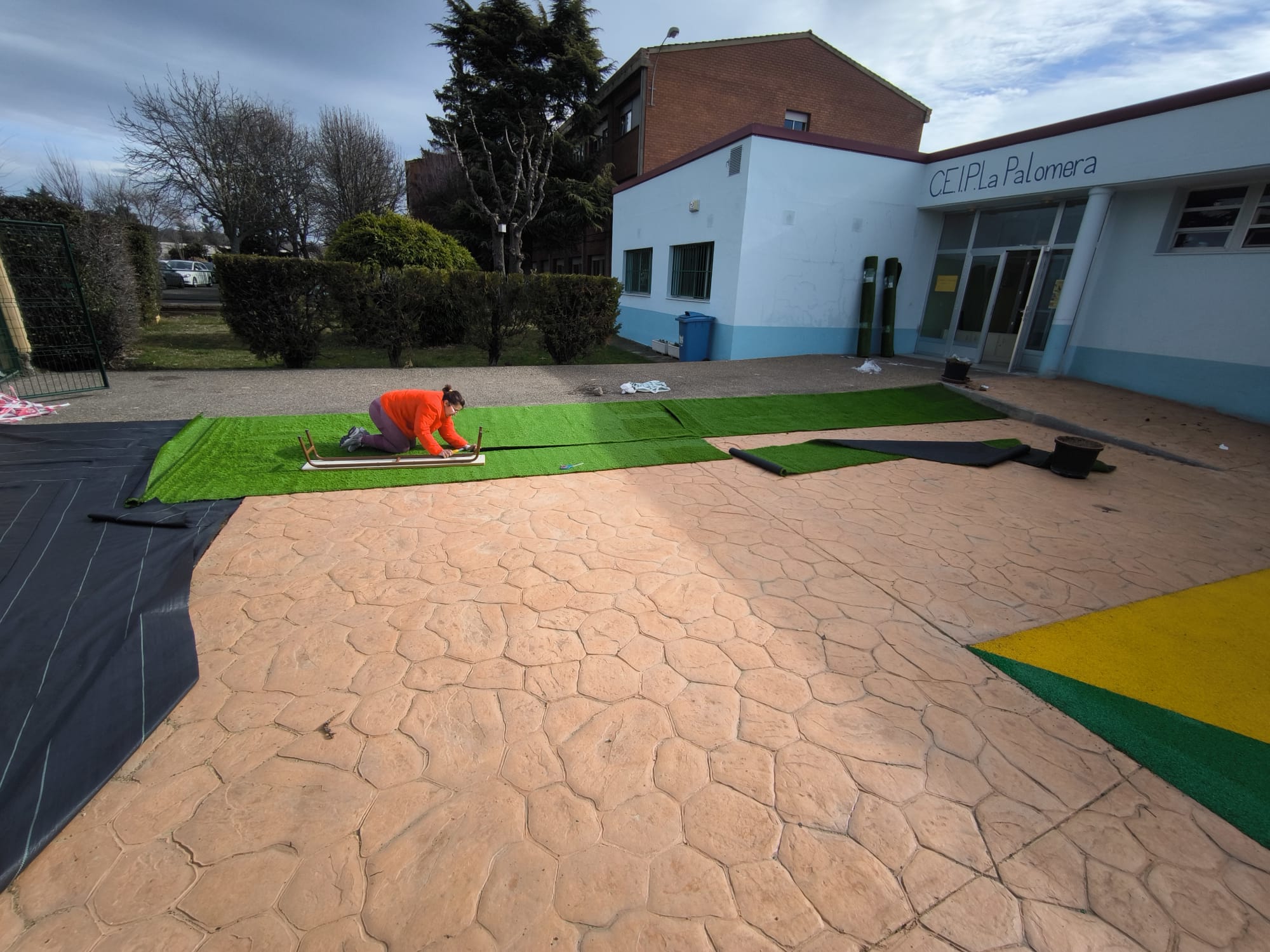 Esta mañana, el AMPA, en colaboración con el cole, ha procedido a instalar césped artificial en la parte del patio delantero de infantil que faltaba por rematar. Os dejamos foto del resultado.