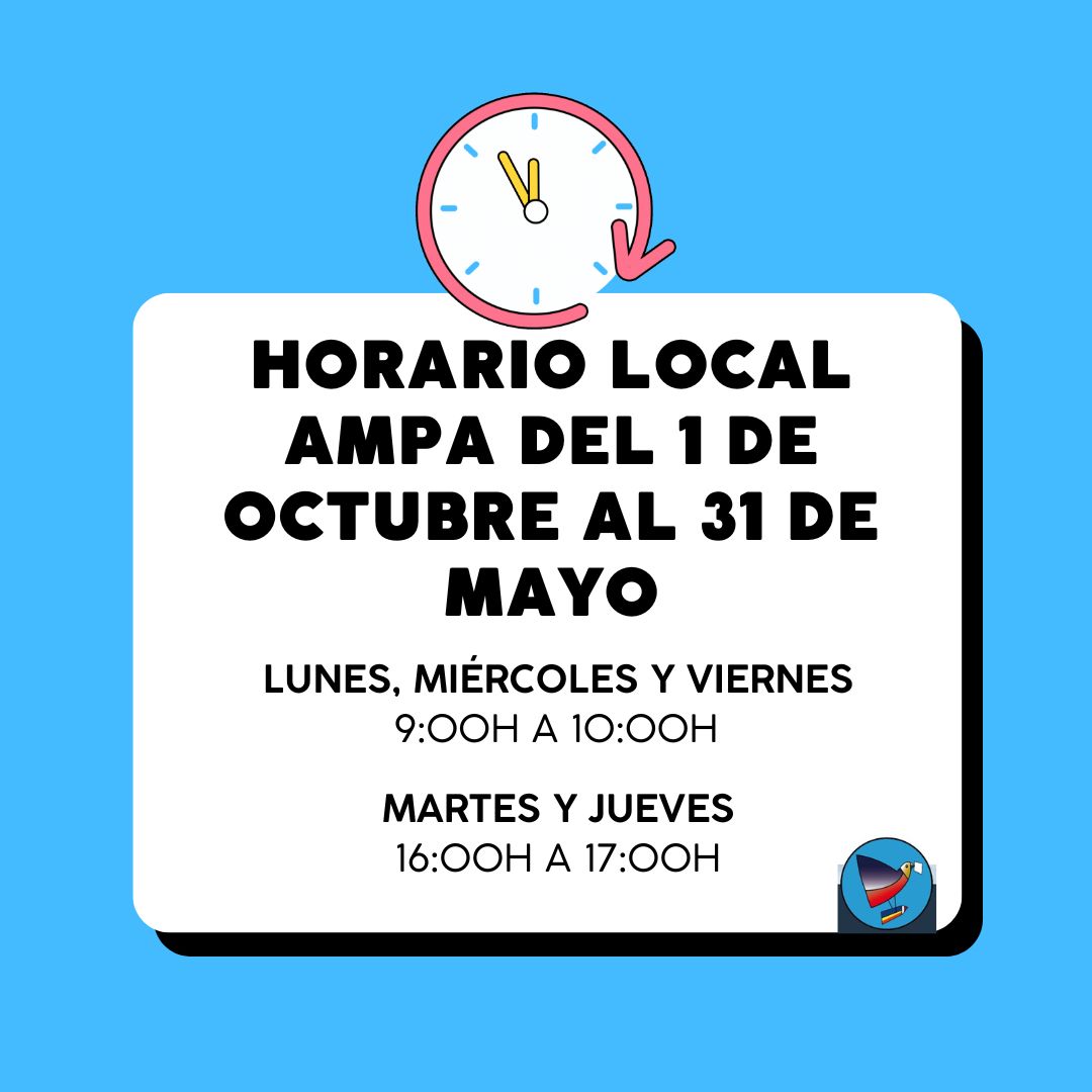 Os recordamos que el horario de atención al público del local de la AMPA a partir del 1 de octubre es el siguiente: